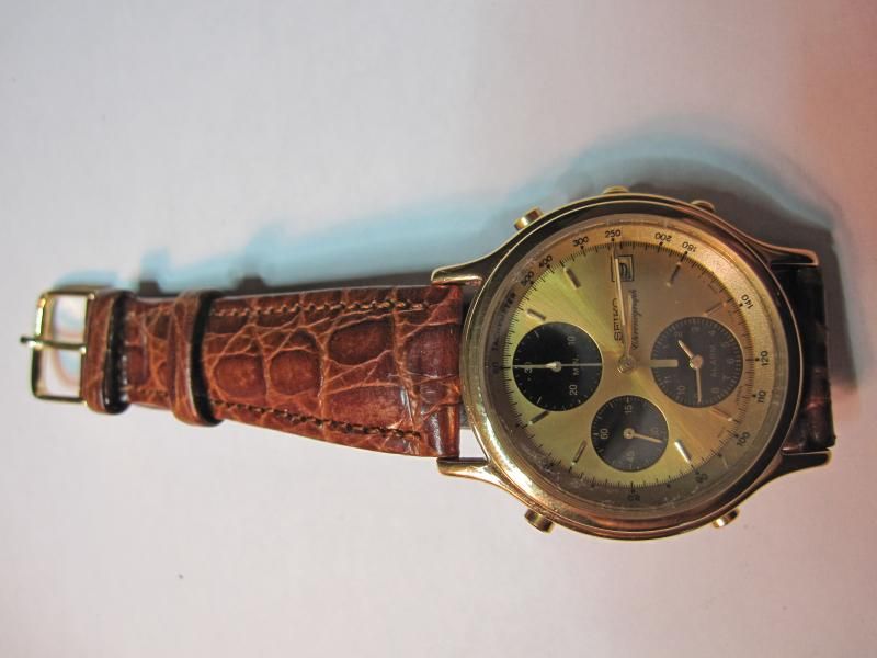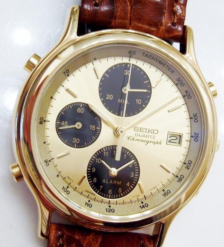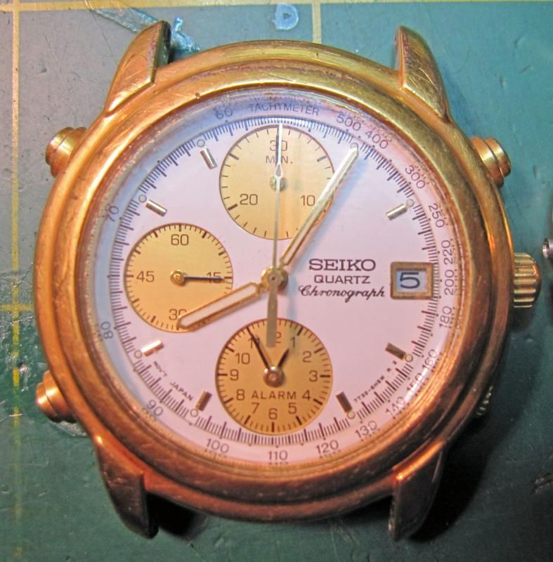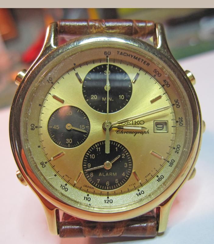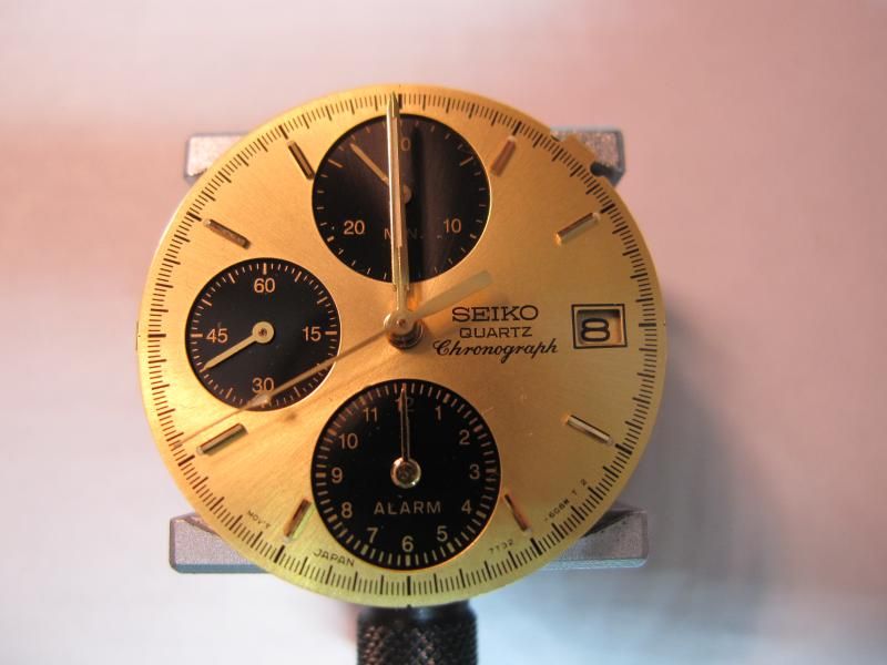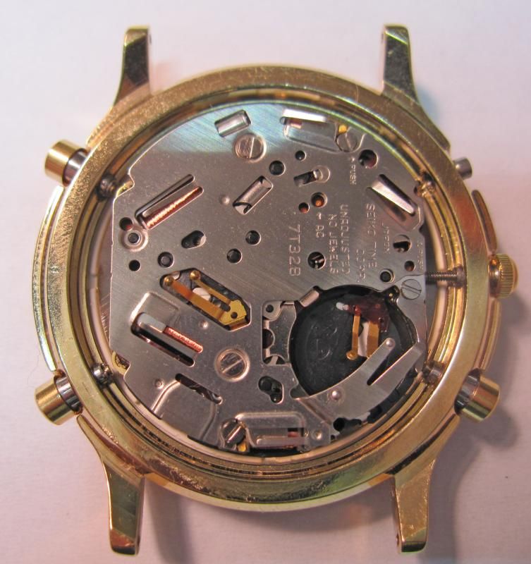 I have bought a couple of them. One was a very attractive 7T32. I had an older small cased 7T32 with a green face that the gold tone on the case and bracelet was about 80% wiped out and the crystal had some scratches but mechanically it still worked perfect. So I picked up a nice 42mm case 7T32 salesman sample. Brushed stainless finish with a nice blue dial and a a rotating ring with sunken marking filled in with a matching blue. This was my first attempt and the fact that the case was a completely different size added some difficulty as the stems do not come with salesmen samples and the doner watch stems were to short. The only real goof I had was removing the crowns from the case. They glue them in with what appears to be that "hotgun" plastic type glue. I tried to force the crowns out which I did bit the threaded part of the stem is to delicate to be pushed out. So on my second attempt I broke the whole watch down to the case with just the crowns glued into it. I used a clamp and slide the crowns and case into a small bottle of acetone a let it sit overnight. The next morning I was able to pull the crowns right out of the case with my thumb nail and the acetone did not mark up the case at all. Then I just used some reamers to clean what was left of the glue in the tubes out a toothpick to clean up the crowns. Now it is all waiting on the bench for later tonight to go back together. it remains to be seen if the stems will need replacing on this second attempt. The replacement 7T32 Seiko stems are all only offer in one length. It is up to the installer to cut the threaded end down to the correct length. I'll post some pictures up later of the one I'm working on now. I did not take pictures if the first one I buggered up a bit.